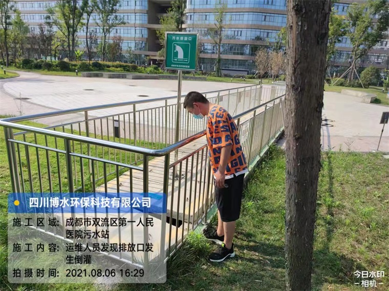 1、運(yùn)維人員在日常的巡檢中發(fā)現(xiàn)污水處理站排放口發(fā)生倒灌現(xiàn)象
